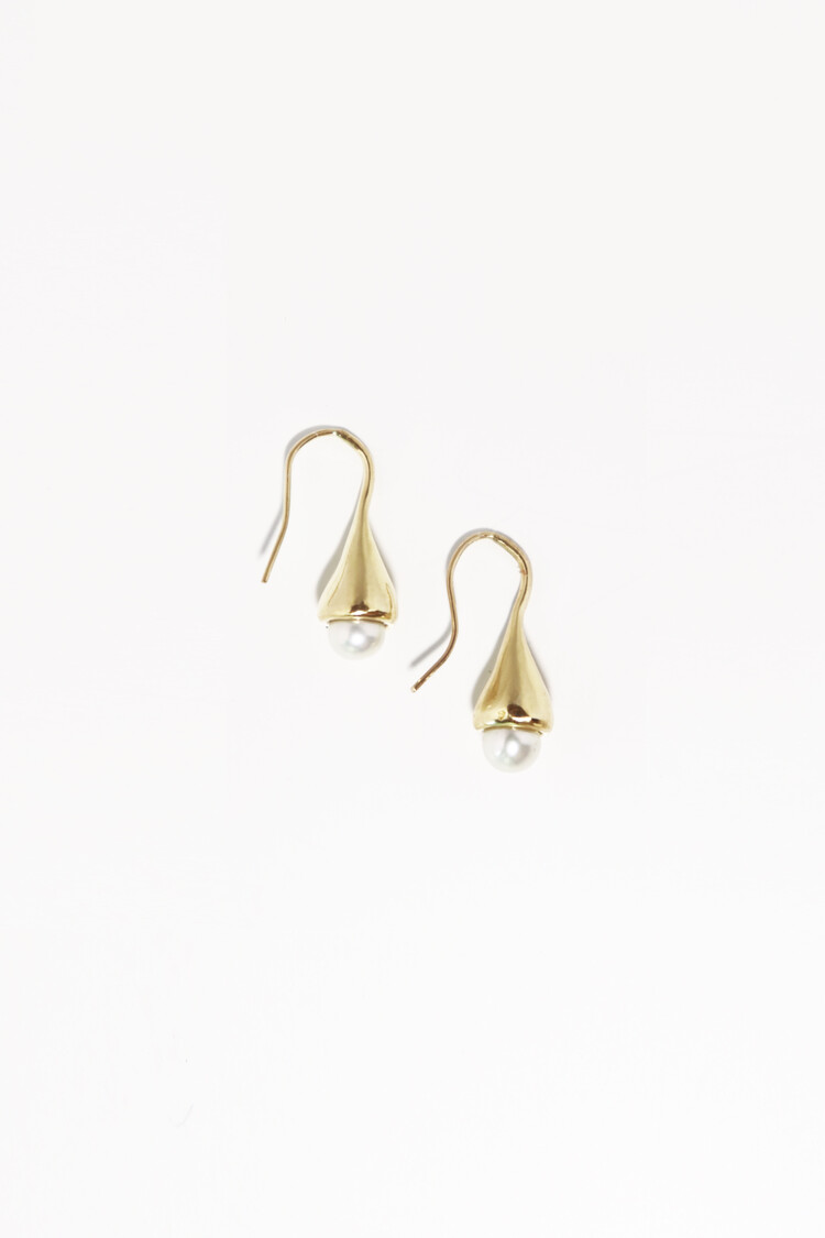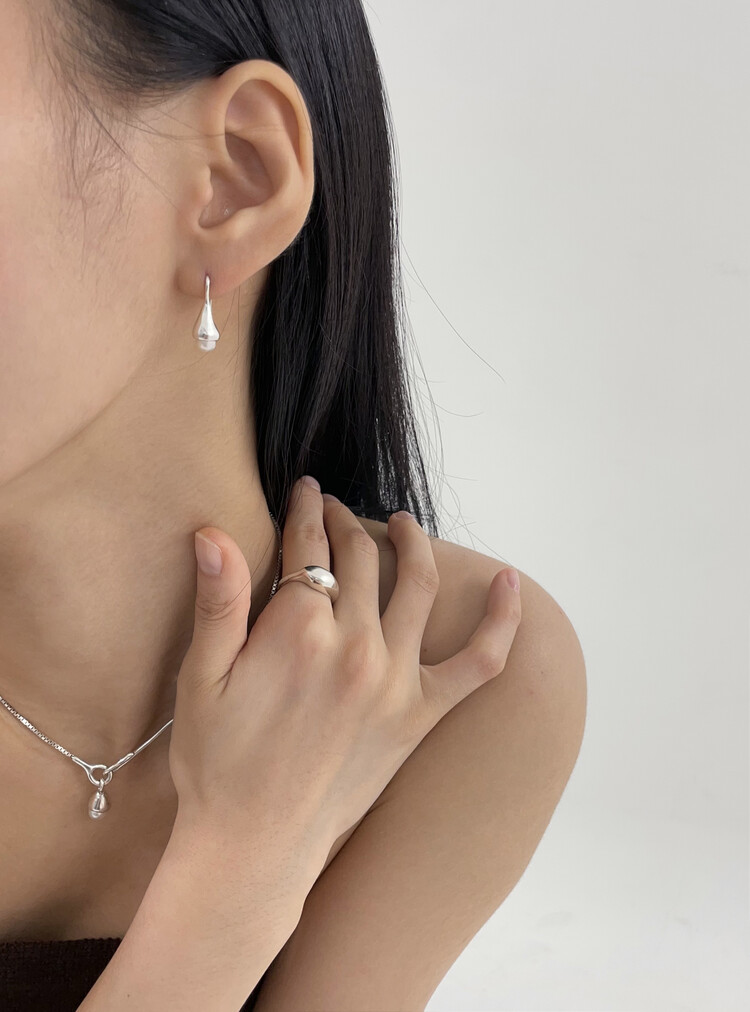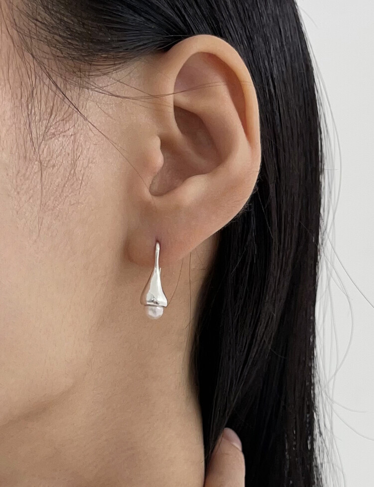 길고 도톰한 형태의 작은 드롭 이어링으로