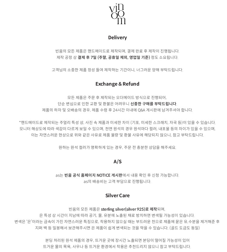 오더메이드 제품으로 단순 변심으로 인한 교환 환불 불가
