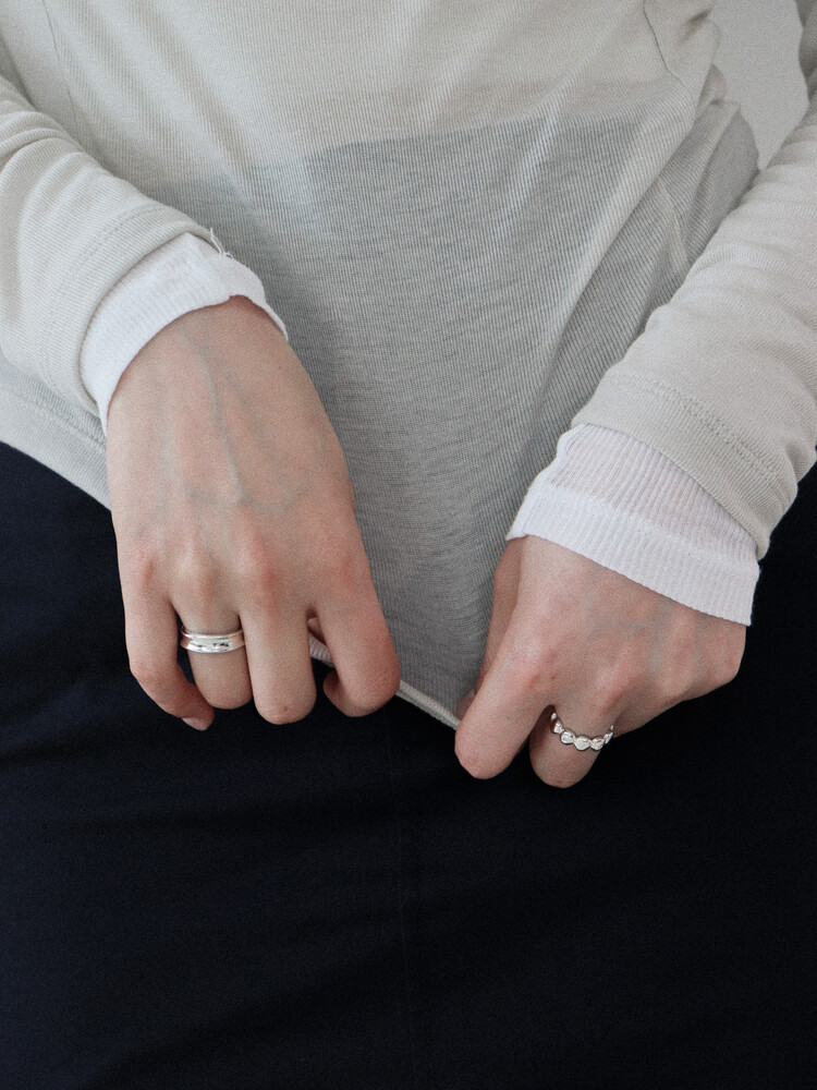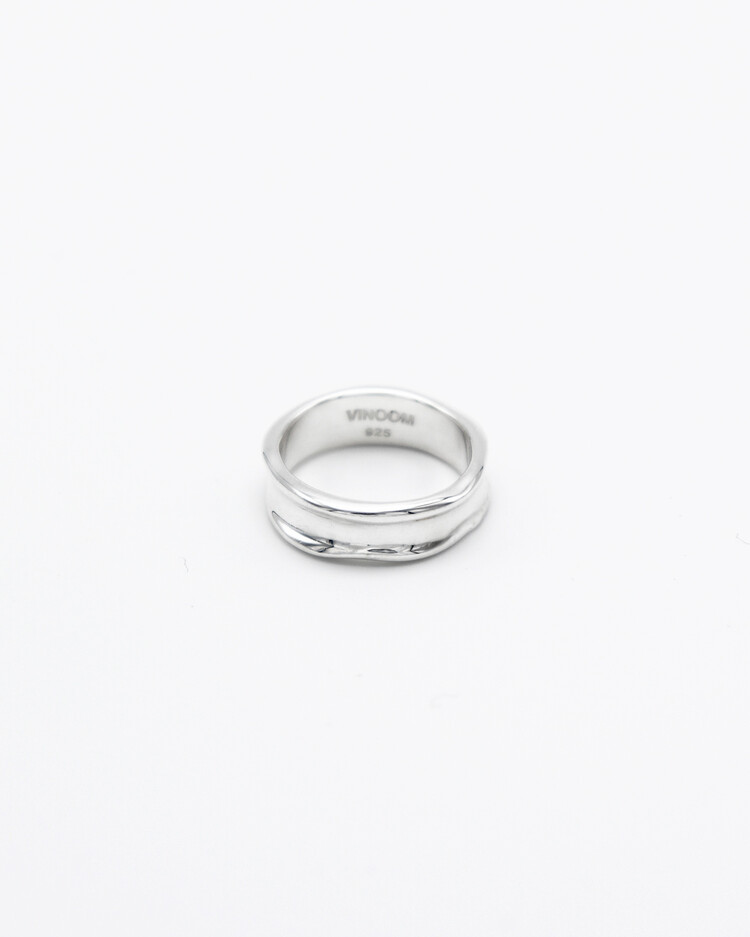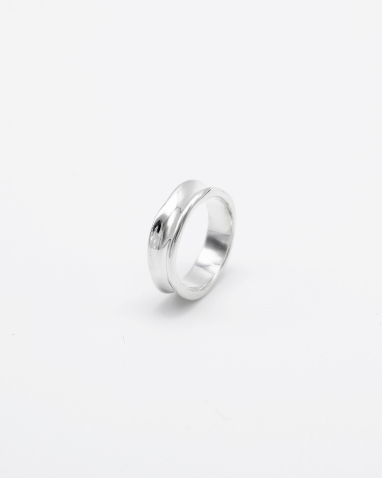 반지 겉 면의 웨이브 형태와 안쪽으로 둥글게 파인 듯한 디자인은