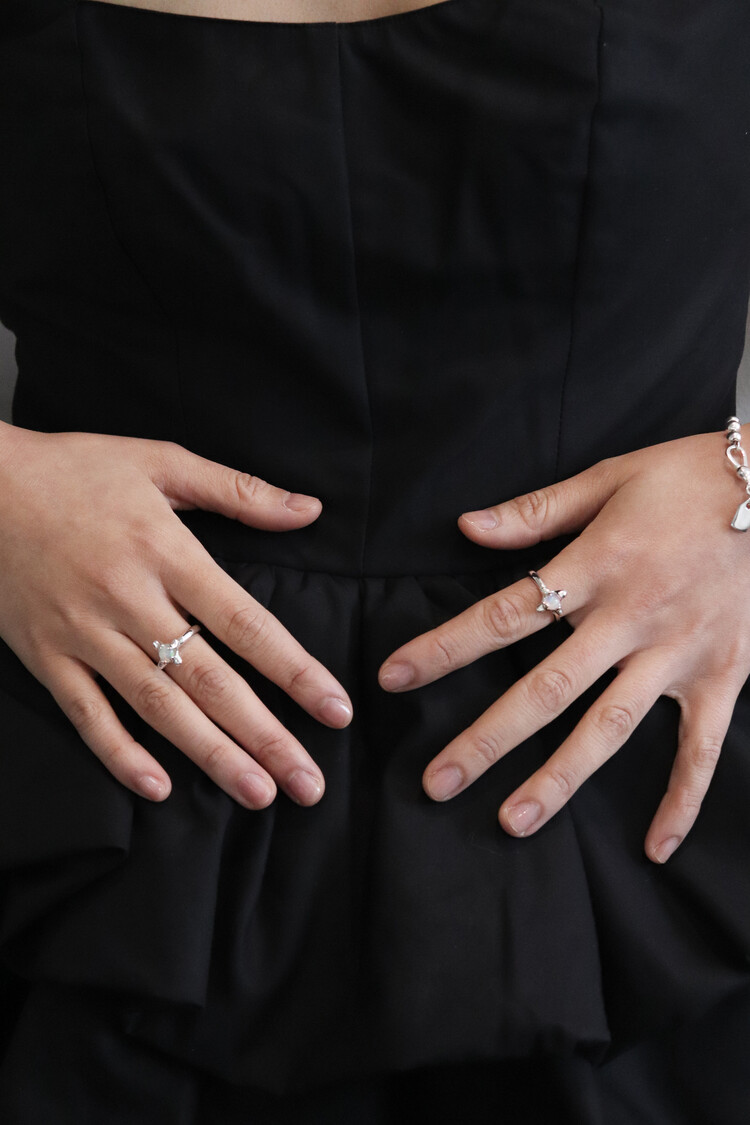 비정형적인 사각 별 모양에 천연 오팔 캐보션이 셋팅된 제품입니다. 가볍게 착용하기 좋으며, 오팔이 포인트가 되어 줍니다.
